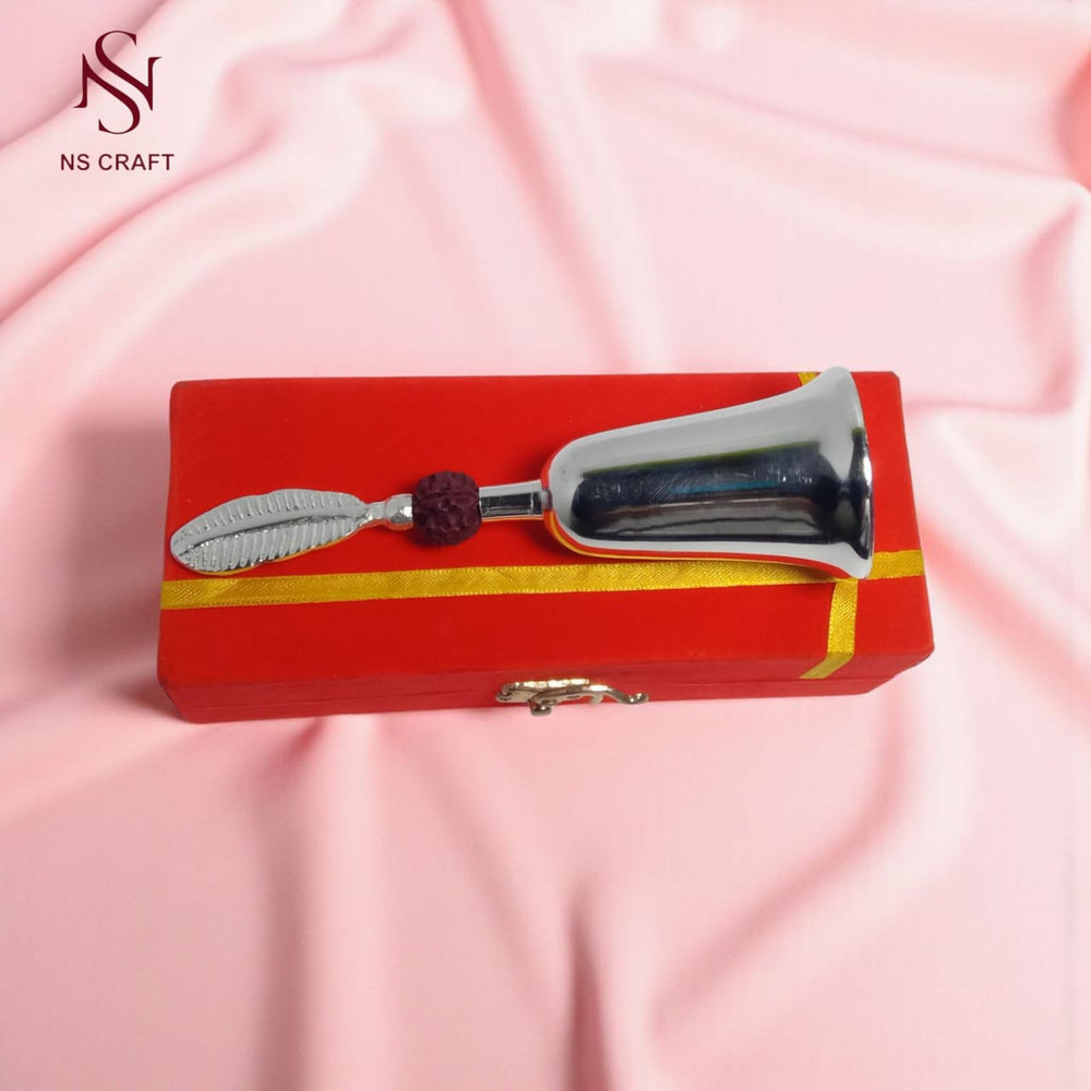 Add a divine touch to your pooja rituals with the NS CRAFT Silver Plated Pooja Bell, a traditional Indian ghanti designed for spiritual use at home, in temples, or during religious ceremonies. Crafted with precision and finished in lustrous silver plating, this bell produces a clear and resonant sound, creating a sacred ambiance during your daily prayers or aarti. The elegant and timeless design reflects traditional Indian aesthetics and devotion. Housed in a velvet-lined gift box, it also serves as a thoughtful spiritual gift for festivals like Diwali, Navratri, or Ganesh Chaturthi, or for weddings, housewarming ceremonies, and other auspicious events. Built from durable materials, this pooja bell is easy to handle and maintain, making it a meaningful addition to any mandir, prayer corner, or devotional decor. Choose NS CRAFT for authenticity, artistry, and spiritual connection.